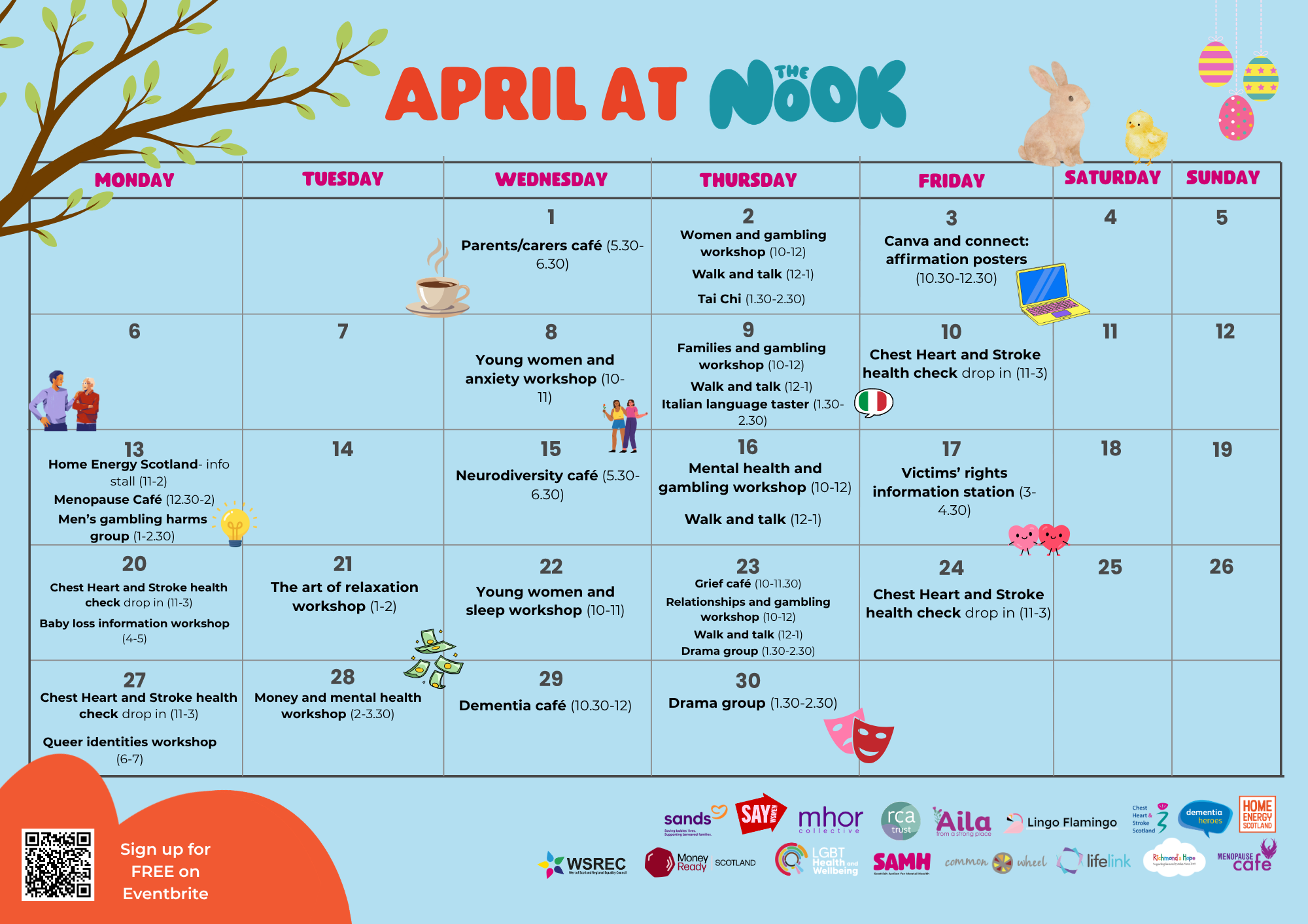 We regularly host free events such as workshops, crafting activities and more. You can see all upcoming events at The Nook in Glasgow on our Eventbrite page.